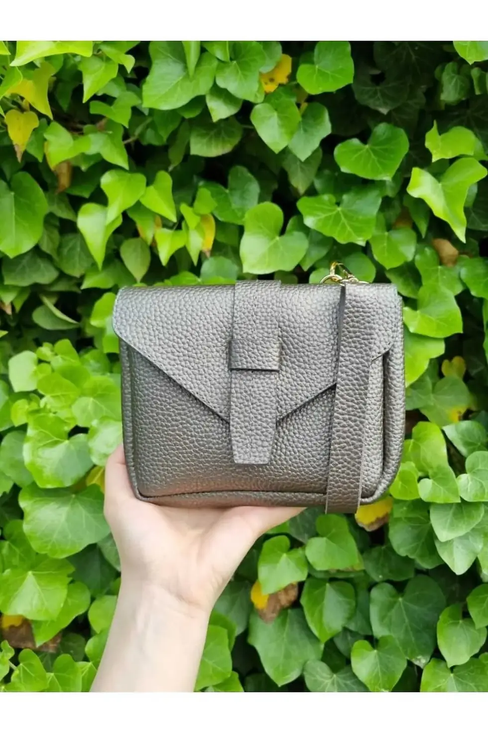 Kadın Ayarlanabilir Askılı Yumuşak Deri Küçük Ve Zarif Iki Bölmeli Gri Omuz Çant